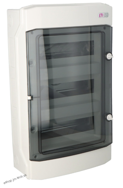 Rozvodnica ETI plastová IP65, 3-radová, 36-modulová, priehľadné dvierka